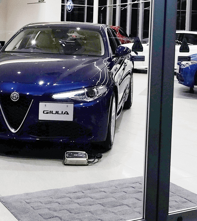 ショールーム用バッテリー電源は、MXS25ECでバッテリー上がりの心配なし