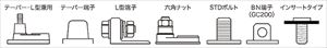 ターミナルは、テーパーとSTDボルトの2つがプラスとマイナスの各極性に付いています。片方または両方を使えます。(画像は他の機種です)