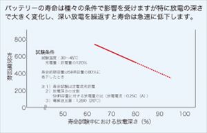 バッテリーの寿命は種々の条件で影響を受けますが特に放電の深さで大きく変化し、