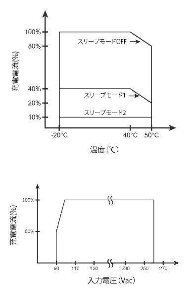 CXシリーズは「スリープモード」を搭載しており、高温時のファンの動作と充電電流が変化します。その結果、ファンの動作音が小さくなり静音動作します。